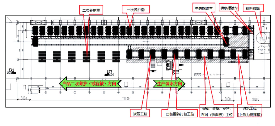 ÒÔÅÝÄ»ìÄýÍÁΪ»ù²ÄµÄÇáÖʸôǽ°åµÄÉú²úÖ÷Òª°üÀ¨Ä£¾ß×é×°¡¢½¬Ìå½½×¢¡¢Ñø»¤¡¢ÍÑÄ£ºÍÄ£¾ßÇåÀíµÈ¹¤Ðò£¬Ä£¾ßΪ³É×éÁ¢Ä££¬¸ù¾ÝÉú²ú¹¤Ðò×éÖ¯ÐÎʽ£¬¿É·ÖΪģ¾ß¹Ì¶¨ºÍÁ÷¶¯Á½ÖÖ·½Ê½¡£Ä£¾ß¹Ì¶¨·½Ê½É豸Ͷ×ÊС£¬µ«Õ¼Óóµ¼äÃæ»ý´ó£¬Éú²úЧÂʵÍ;¶øÄ£¾ßÁ÷¶¯·½Ê½×Ô¶¯»¯³Ì¶È¸ß£¬¼¯Ô¼¸ßЧ£¬¿ÉÌá¸ß³µ¼ä²úÄÜ£¬Ëõ¶ÌÉ豸Ͷ×Ê»ØÊÕÆÚ£¬Ìá¸ßÐ§Òæ¡£±¾ÏîÄ¿´´ÐÂÑз¢ÁËÈáÐÔÑø»¤ºÍÁ÷Ë®½½Öþ³ÉÐÍÍÑÄ£Ïà½áºÏµÄ×Ô¶¯»¯Éú²ú¹¤ÒÕ¼¼Êõ£¬È¡µÃÁËÄÚ¸ôǽ°åÖÆÔì¼¼Êõ·½ÃæµÄÖØ´óÍ»ÆÆ¡£Éú²úϵͳ°üº¬ÅÝÄ»ìÄýÍÁ½Á°è½½Öþϵͳ¡¢´«ËÍϵͳ¡¢Ñø»¤ÏµÍ³¡¢Ä£¾ßÇåÀíϵͳ¡¢¿ªºÏģϵͳ¡¢³éоϵͳ¡¢³ö°å·×ª´ò°üϵͳºÍÖÇÄÜ¿ØÖÆÏµÍ³µÈ¡£